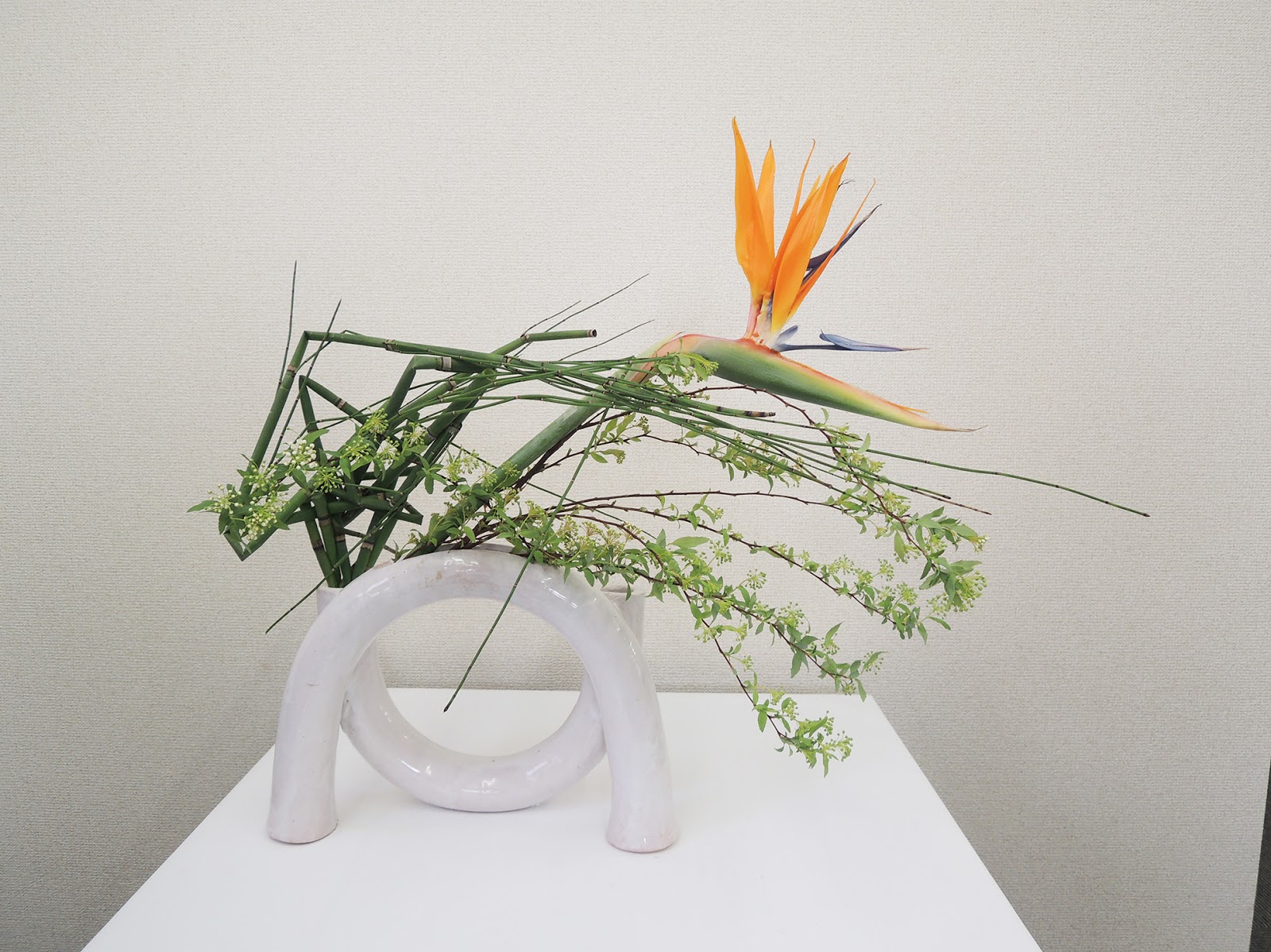 花材:れんぎょう、りんしょうばい、アンセリウム