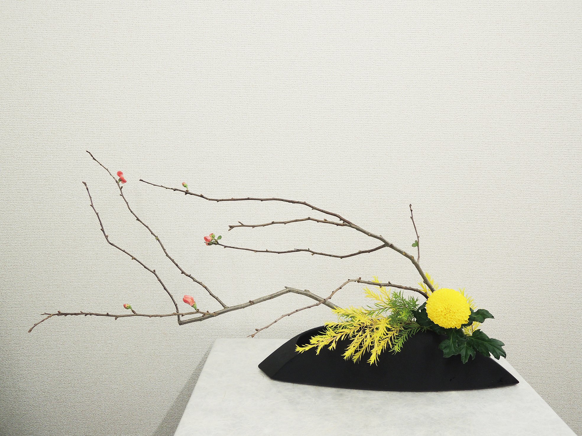 花材:岩南天、菊、ひば、ふうせんとうわた