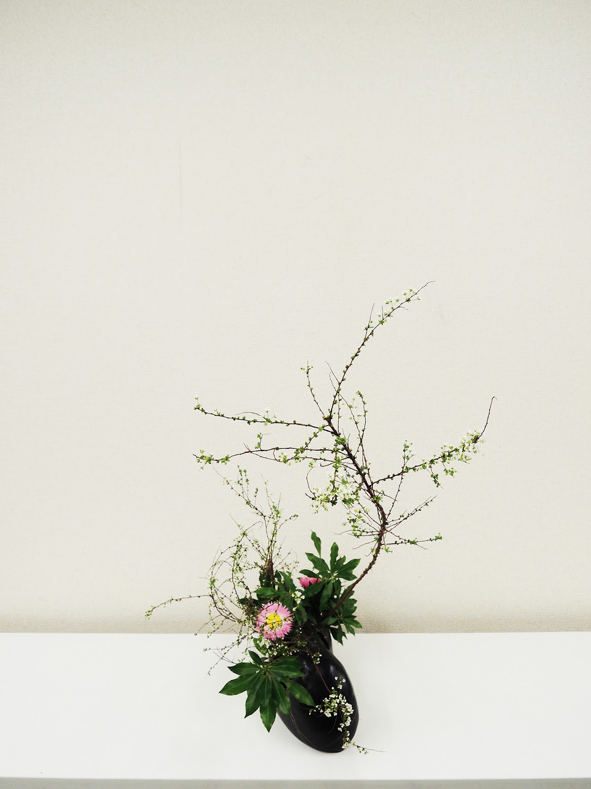 花材:あせび、アレカヤシ、ミリオグラダス、はらん